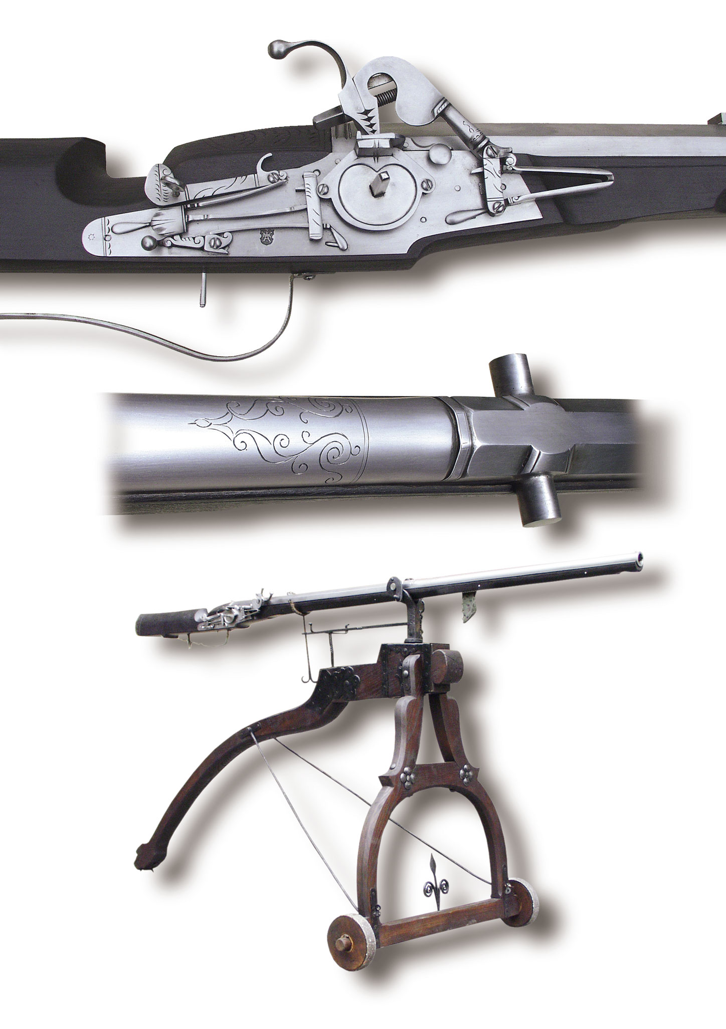 Replik eines Doppelhakens nach einem Original in den Kunstsammlungen der Veste Coburg, Inv. IV. D. 45. Herstellungsort des Originals: wahrscheinlich Suhl um1620
