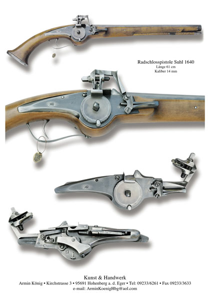 Replik einer Radschlossistole von Armin König nach einem Original aus dem Bayerischen Armeemuseum Ingolstadt. Herstellungsort des Originals: Suhl um 1640.