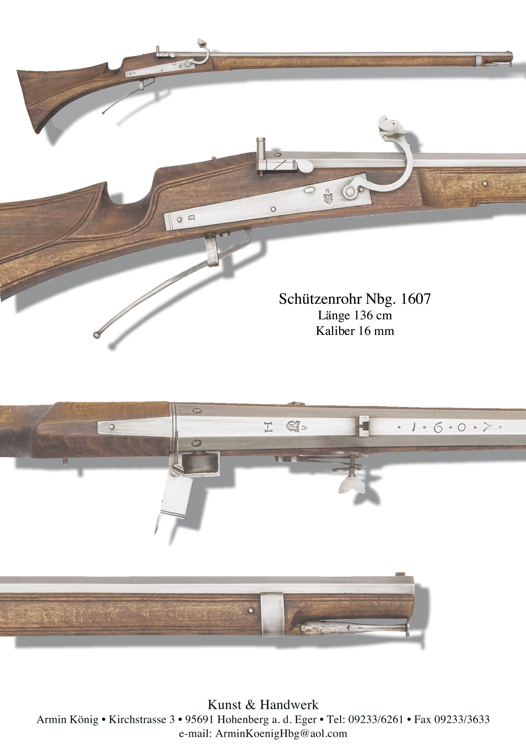 Innen glatter Lauf mit einem Laufkaliber 16 mm (20 Kugeln/Pfund), ausgelegt für eine Rollkugel von 14,9 mm (24 Kugeln/Pfund Nürnberger Silbergewicht).