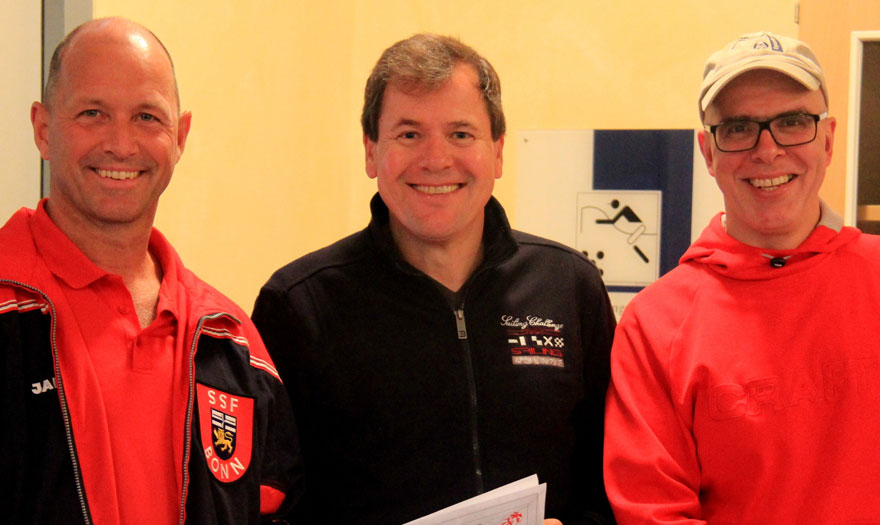 Internationale Deutsche Meisterschaften 2014 der Masters im Modernen Fünfkampf . Sieger Internationale Gesamtwertung und Deutscher Meister: Peter Engerisser (Bildmitte) vor Manfred Häb (SSF Bonn, links) und Matthias Dahlem (Duisburger Fechtclub, rechts).
