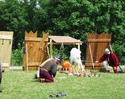Direkt unterhalb der Bärenbastei, in einem malerischen Winkel des Mauerbefestingung hatte das 15. Jahrhundert seine Zelte aufgeschlagen. Für zahlreiche Besucher, aber auch für manche der anwesenden Artilleriegruppen selbst, von denen sich die meisten sonst nur im 18. und 19. Jahrhundert bewegen, war es hochinteressant, Steinbüchsen, Kammergeschütze und Burgundergeschütze aus der Zeit Herzog Karls des Kühnen, des deutschen Kaisers Friedrich III. und der Schweizerkriege in Aktion zu sehen. Jedoch nicht nur die Bewaffnung ist originalgetreu, sondern auch Lebensweise, Handwerk, Nahrungszubereitung und Alltag werden von den einzelnen Gruppen mit bewundernswerter, bisweilen wissenschaftlicher Genauigkeit und Authentizität gelebt.