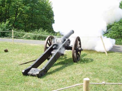 | Na also - funktioniert doch! Die "Mini-Kartaune" entlädt sich mit einem gewaltigen Rums, der allerdings, und erstaunlicherweise - trotz der Größe des Geschützes - in erträglichem Rahmen bleibt. Da waren manch kleinere Exemplare vorlauter. |