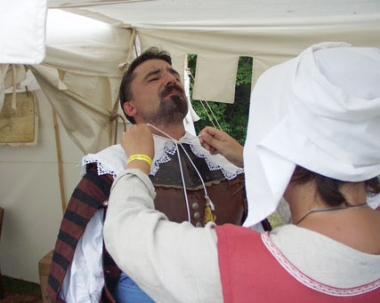 ... wobei ihn beim Anlegen des Hemdkragens - trotz offensichtlicher Routine der Zofe - ein etwas unwohles Gefühl beschleicht.