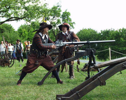 ... und Abfeuern eines Doppelhakens