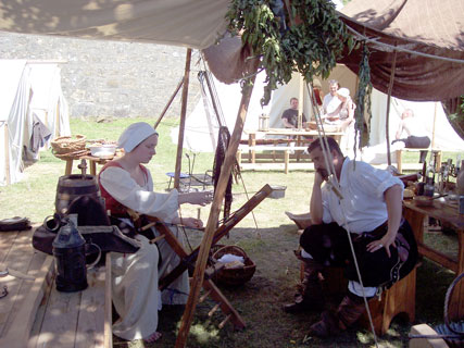 Das idyllisch gelegene Lager des Merchinger Landsknechtshaufen am Fuße der neuen Bastei. |