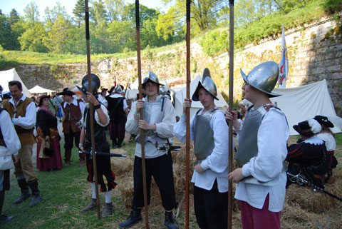 Die Pikeniere der Aschaffenburger Musketiertruppe zeigten anschaulich, was es früher hieß, von der Pike auf zu dienen. Hierhin wurden wirklich die jüngsten Rekruten gesteckt und der Dienst des Pikeniers war alles andere als beliebt. |
