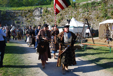 | Aufmarsch der Truppen zur Feldschlacht. Auch hier waren wieder die Mannen der ungarischen Heiducken und Husarentruppen Bethlen Gabor und Budai Talpasok der optische Mittelpunkt und eine willkommene Abwechslung zum altbekannten "Musketier Genre". |