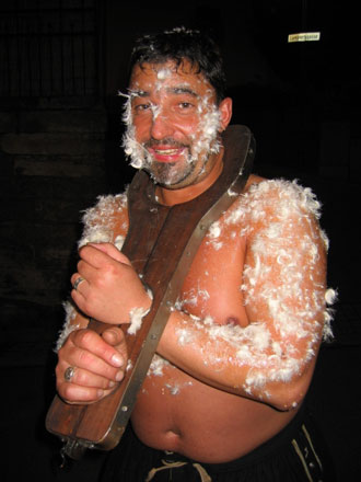 ...wonach er , als Strafe für seine Missetaten (im Klartext: den versaubeutelten Termin - Insider wissen, worum es sich handelte) zuerst geteert und gefedert wurde (wofür Gisela extra ihr bestes Bettgefüll opferte), und schließlich, jedem pflichtvergessenen Offizier zur Mahnung, auf einer schmalen Planke durch die Gassen Hilsbachs reiten mußte.