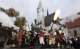 Delegationen der historischen Gruppen zur Fahnenweihe des historischen Vereins Alt-Tilly anläßlich des Tilly Marktes in Altötting am 29. Oktober 2006 |