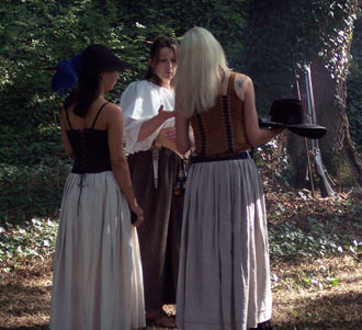 | Drei holde Burgfräulein vertreiben sich die Zeit mit Handlesen. Ob es der Angebetete wohl ernst meint? |