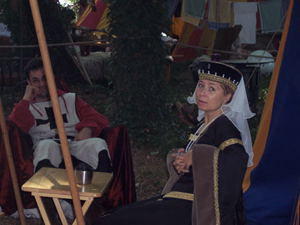 Die Burgherrin läßt sich von einem Ritter unterhalten, dem es aber augenscheinlich momentan an passendem Gesprächsstoff mangelt. |