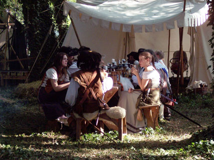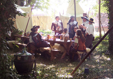 | Wild romantisch gelegen war das Lager der Landsknechtsgruppe aus Merchingen, die zusammen mit der Kaiserlichen Feldwache Tilly aus Augsburg und Des Tillys Wilder Haufen zu Hilspach 1622 das 17. Jahrhundert repräsentierten. |