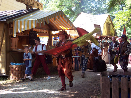 | Die Metschänke war ein beliebter Treffpunkt quer durch alle vertretenen Zeitepochen. Zumal man dort Abwechslung zum allgegenwärtigen dunklen Wallersteiner Landsknechtsbier erlangen konnte. |