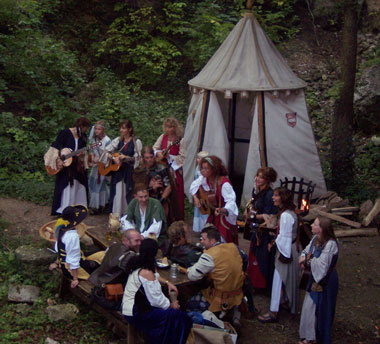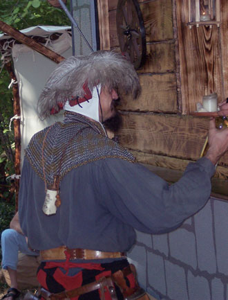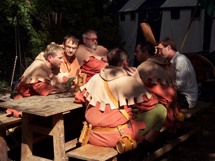 | Auch Landsknecht Bernhard genehmigte sich gerne mal einen Met an der Schänke zum Schwarzen Raben. Hatte er doch seine Zelte genau gegenüber aufgeschlagen. |