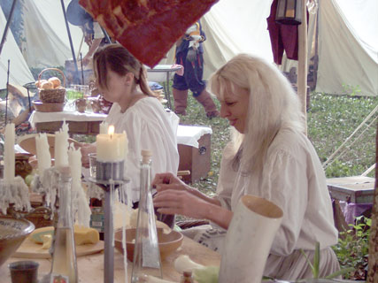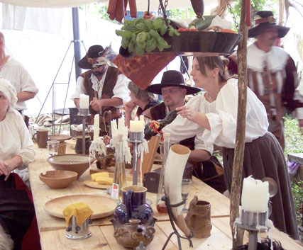 ....vor allem im Küchenzelt von des Tillys wildem Haufen zu Hilspach sorgten die Marketenderinnen für manch (sowohl feste als auch flüssige) lukullische Überaschung aus ihrem schier unerschöpflichen Proviantmagazin. |