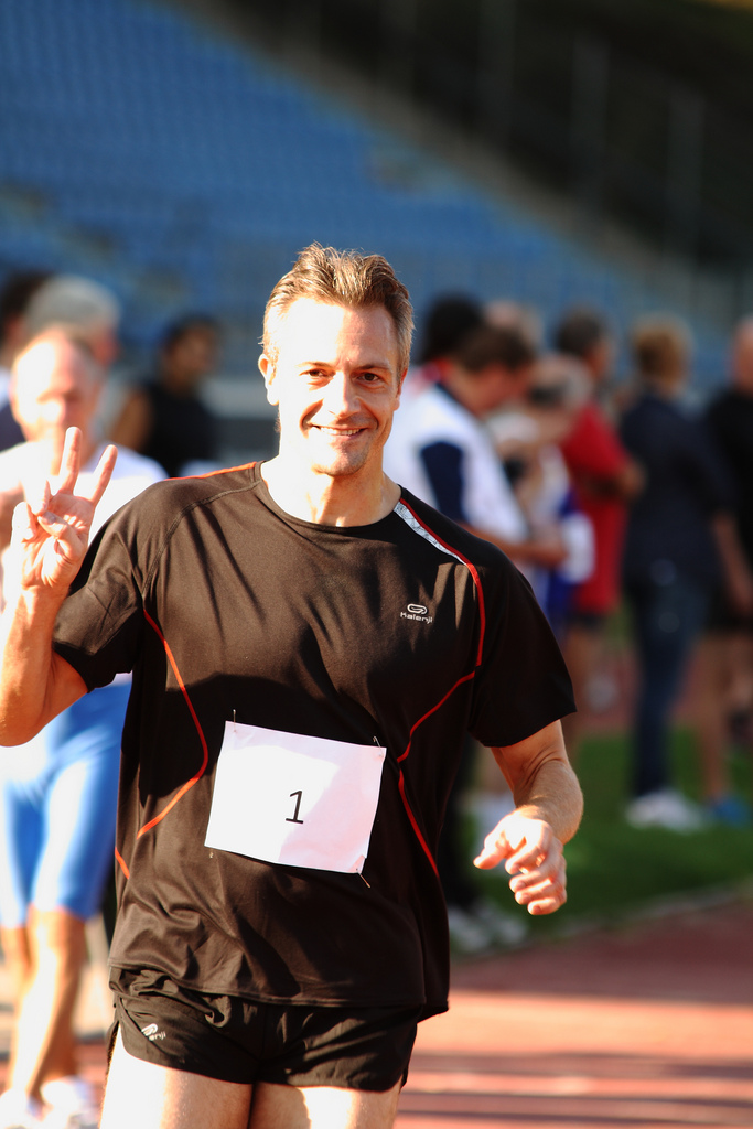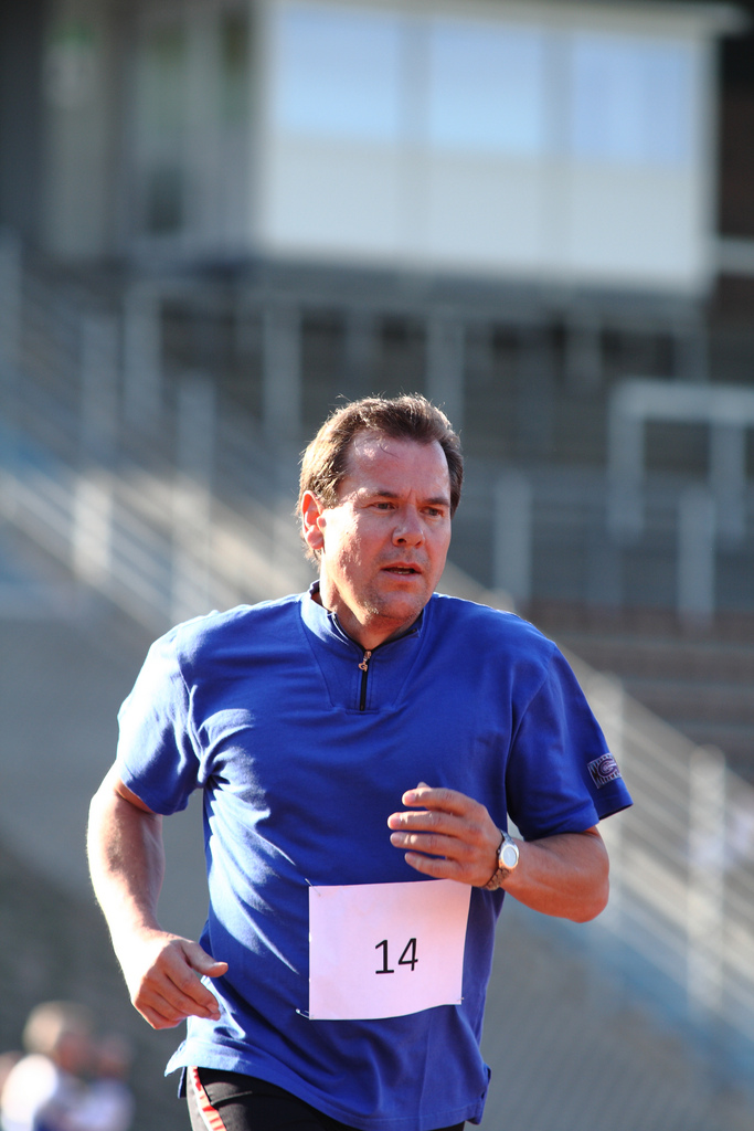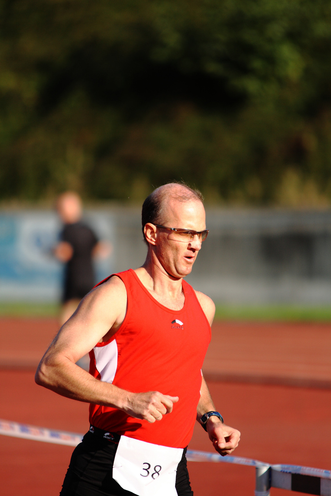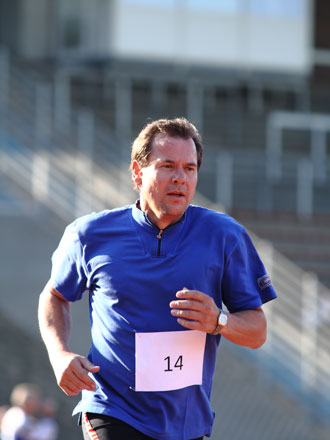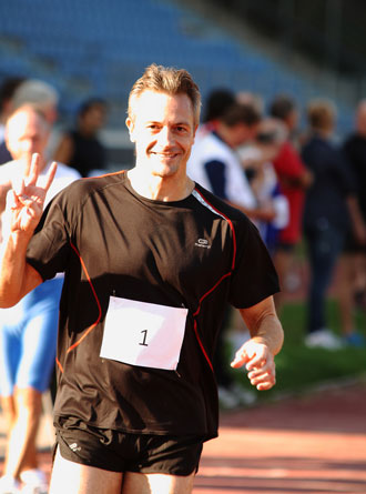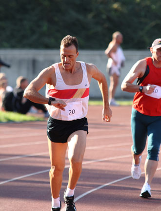 | Imre Bánkúti aus Ungarn konnte es locker angehen lassen. In seiner Altersgruppe M30+ hatte er keine Konkurrenz zu fürchten. Trotzdem lief er mit 6:41,8 Min. die drittbeste Zeit. |