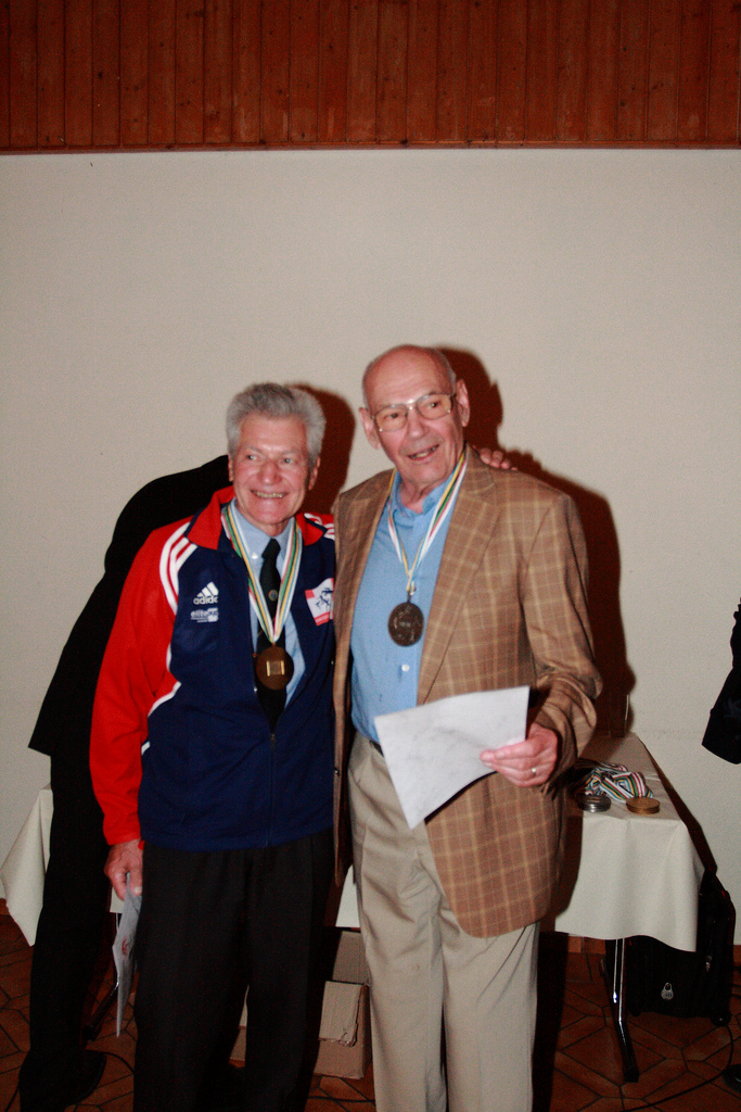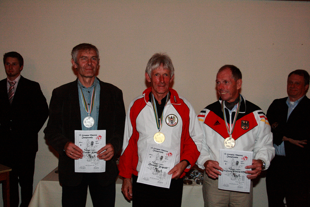 Die Siegerehrungen fanden am Abend im Rahmen eines Galadiners statt. Der Präsident der Masters-Vereinigung Erik Pock, selbst Sieger bei den Vierkämpfern M70+, verlieh die Medaillen, welche sowohl im Festsaal als auch danach im Hotel noch ausgiebig gefeiert wurden.