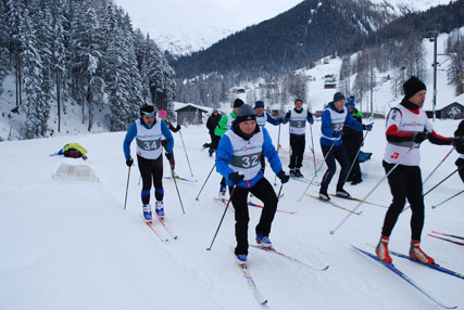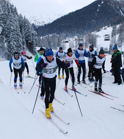 | Start zum Langlauf im freien Stil. Vor allem die Athleten aus der Ukraine waren mit Feuereifer bei der für sie doch etwas ungewohnten Disziplin. | Die meisten Winter-Pentathleten machten sich natürlich im Skatingstil auf die Jagd nach den wertvollen Sekunden. | ||||||||||||||||||
