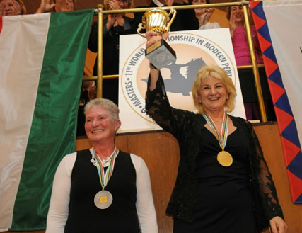 | Nicht zuletzt an dieser Stelle ein großes Kompliment an die ungarischen Veranstalter um Zsuzsa Kovács, selbst Weltmeisterin bei den Fünfkampf-Damen in der Klasse 50-59 Jahre (rechts im Bild, links daneben die Silbermedaillengewinnerin Steffi Sauer aus Uffenheim) für die hervorragende Organisation dieser Weltmeisterschaft. | |||||||||||||||||||||||||