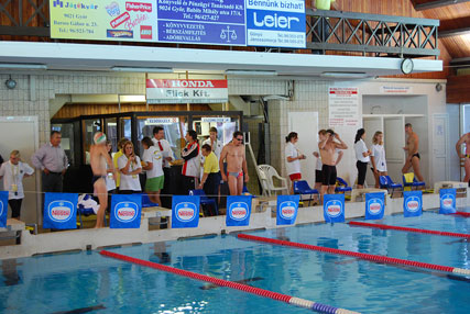 | Das Schwimmen, als dritte Disziplin des ersten Wettkampftages, fand in der Halle auf einer schnellen 25 m Bahn statt, die ,wie alle Sportstätten der Stadt Györ, in einem hervorragenden Zustand war. | |||||||||||||||||||||||||