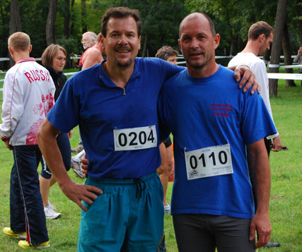 | Peter und Manfred nach dem Zieleinlauf. Die Erleichterung nach dem überstandenen Wettkampf ist den beiden unschwer anzusehen. | |||||||||||||||||||||||||