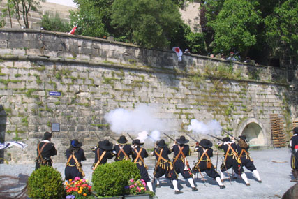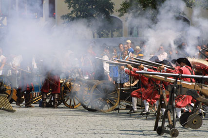 | Die "Krumpholzera" wurde soeben abgefeuert. Die beiden Regimentstücke warten noch auf ihren Einsatz. | ||||||||||||||