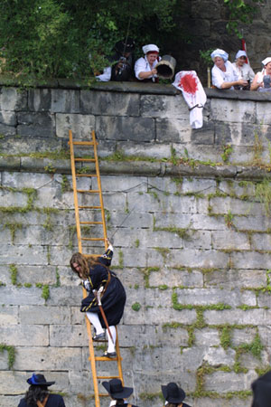 | Einige habens's beinahe geschafft. Wobei dieser Balanceakt auf einer mehr als 6 m hohen Leiter auch für die Akteure ein heikles Unterfangen ist. | ||||||||||||||